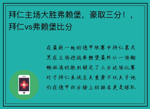 拜仁主场大胜弗赖堡,豪取三分!,拜仁vs弗赖堡比分