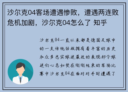 沙尔克04客场遭遇惨败,遭遇两连败危机加剧,沙尔克04怎么了 知乎