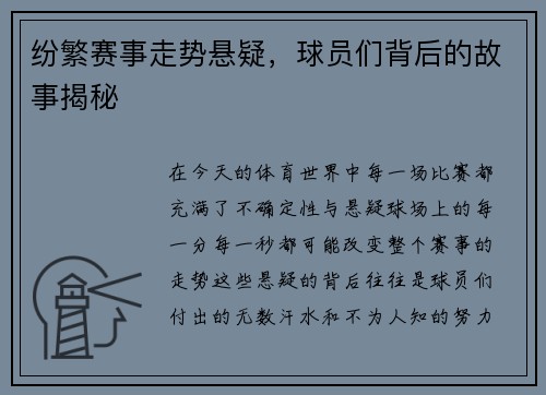 纷繁赛事走势悬疑,球员们背后的故事揭秘